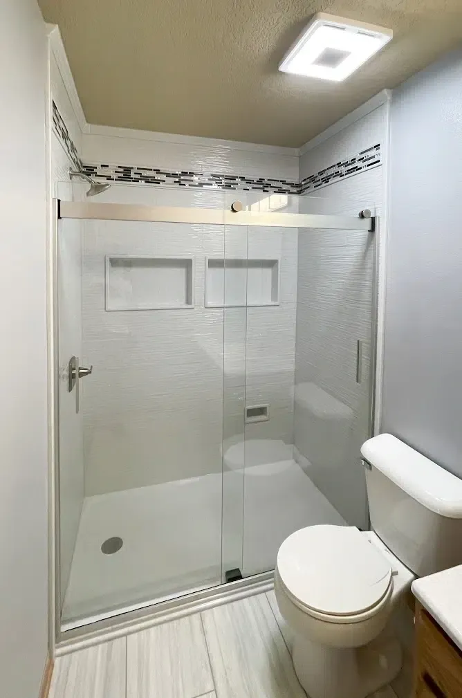 What it is: Cosmetic-only updates to a structurally sound bathroom. Typical work includes fresh paint, a new toilet or sink, a stock vanity, and ceramic tile or a fiberglass shower insert. The layout stays unchanged.